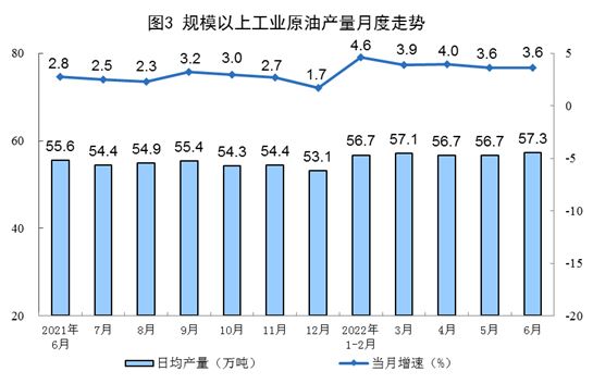 原油生产稳固增添 ,入口由升转降。6月份 ,生产原油1719万吨 ,同比增添3.6% ,增速与上月持平 ,日均产量57.3万吨。入口原油3582万吨 ,同比下降10.7% ,上月为增添11.9%。