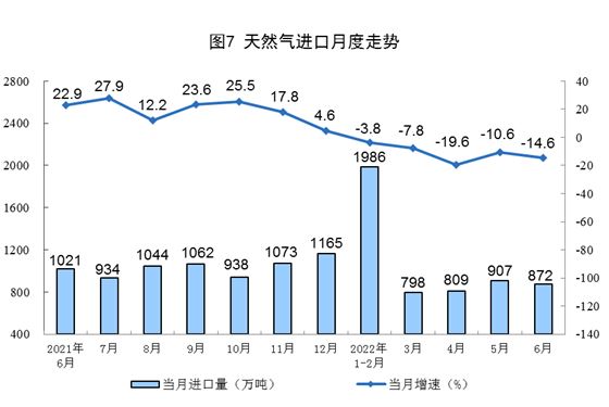 1—6月份 ,生产自然气1096亿立方米 ,同比增添4.9%。入口自然气5357万吨 ,同比下降10.0%。